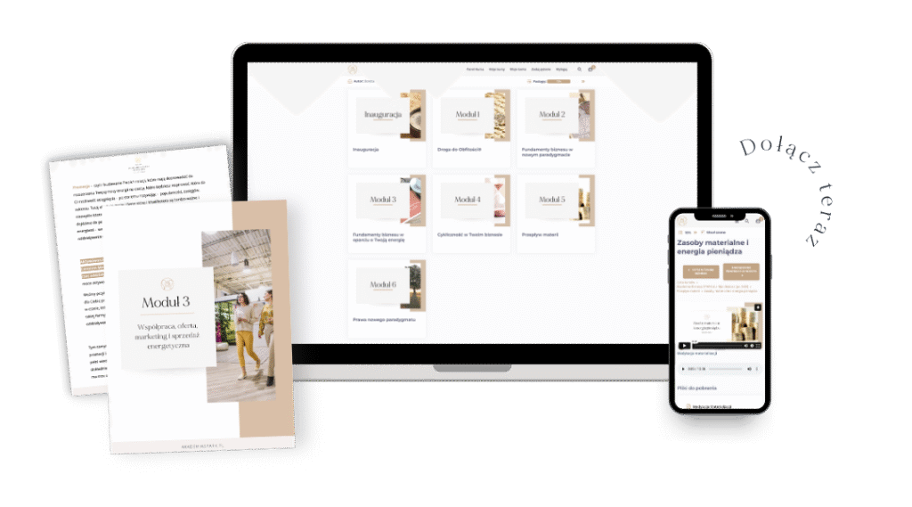 Akademia to przestrzeń, w której odkrywasz prawdę o sobie — swoich darach, potrzebach i wewnętrznej dynamice. Uczysz się przekładać tę wiedzę na sposób prowadzenia biznesu, budowania relacji z klientami i zespołem, a także na organizację czasu i finansów. To podejście, które przynosi ulgę, jasność i poczucie sprawczości, ułatwiając codzienne decyzje i współpracę.